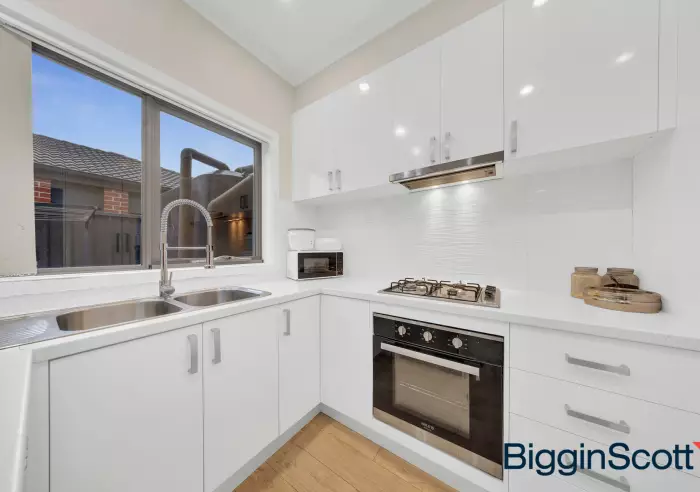 At the heart of the home lies a modern kitchen equipped with quality appliances, a dishwasher, ample bench space, and generous storage to make daily cooking a breeze.