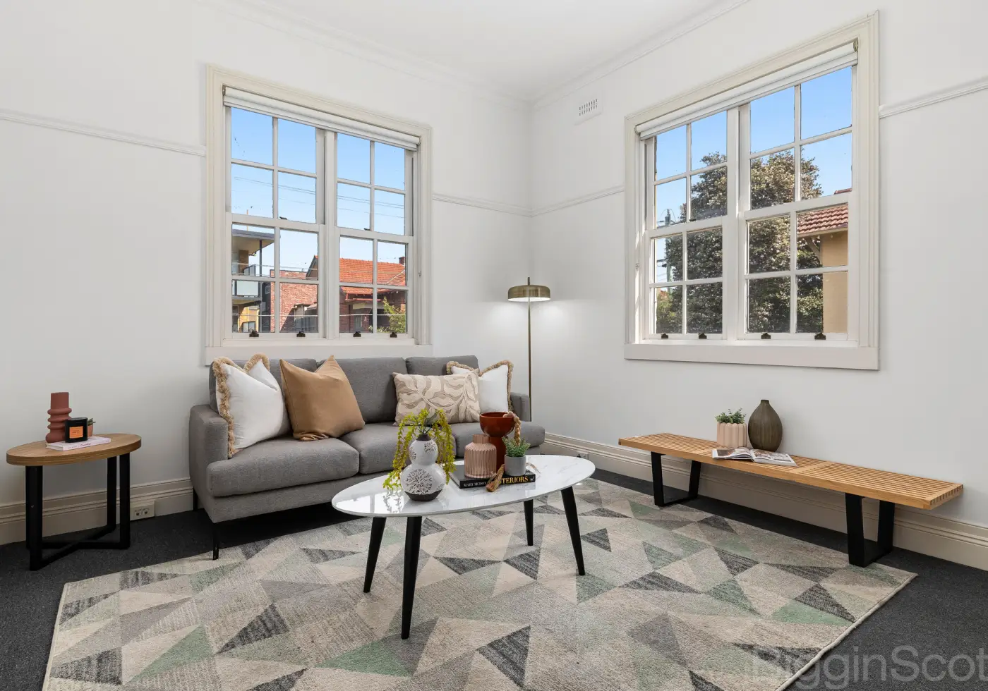 Beautiful, classic Art Deco and within a sensational block, on the corner of Bluff Avenue and Ormond Esplanade ‘Corio’ has four apartments with number 12 being on the first floor. So endearing, that you will love it the instant you step inside it features two bedrooms both with BIR's, abundant light and noticeably tall ceilings that add a sense of style and space in particular within the living room with its big east and west facing windows creating an wonderful zone to relax and enjoy. The front terrace is a big bonus as is the secure carpark and the brilliant position is perfectly Elwood across the road from the beach and just a scenic walk to the Village.