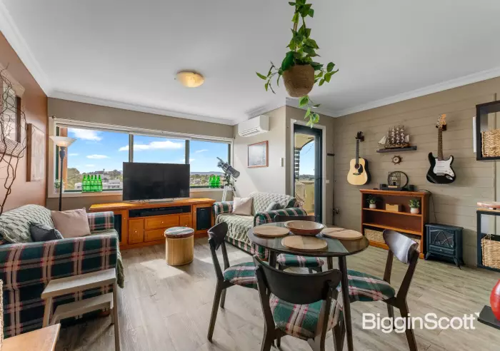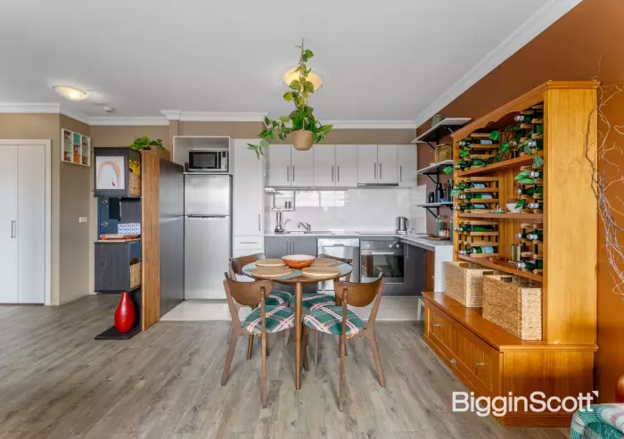 Delivering direct indoor-outdoor access from the open plan domain, a doorway opens onto the lengthy balcony that’s complemented by an outdoor cooking area whilst capturing those phenomenal views. Smartly configured for functionality, the bedroom includes his/her built-in-robes and a desk area with sliding doors opening onto the balcony, while the bathroom benefits from plenty of storage space. Superbly finished with a Euro laundry, split system heating/air conditioning, keyless entry, video intercom, basement parking space plus a storage area.