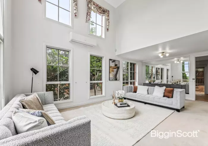 Perched on an elevated 792sqm allotment in a quiet bowl of court position, this phenomenal family residence delivers a lifestyle of distinction for the growing family with spacious internal and external dimensions that promote comfort and effortless entertaining appeal. Graced with a soaring double height ceiling void, the entry foyer flows effortlessly through to the stylish lounge and dining room highlighted by an impressive transom arch window and mirrored feature wall.