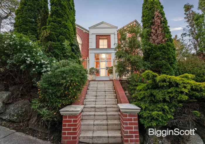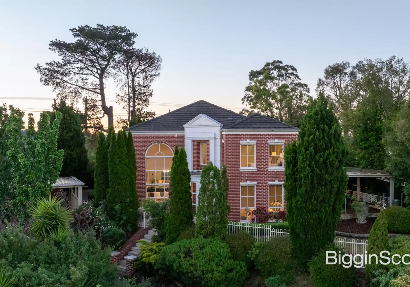 The open plan kitchen, meals and family room appreciates the allure of contemporary flooring, black stone benches, tiled splashbacks, quality appliances, Fisher and Paykel dishwasher and a walk-in pantry, while a crackling open fireplace and a timber breakfast bench encourage guests to keep the chef company. French doors swing open to reveal a covered entertaining patio and backyard detailed with paving, water feature and easy-care gardens, while the laundry leads out to a 2nd entertaining area boasting an alfresco deck with built-in wood-fired wok, sink and gated access to the manicured front yard. Completing the ground floor, you’ll find a guest/4th bedroom, along with a generous study and powder room, while the upper level embraces the three remaining robed bedrooms, including a spacious master suite with beautiful mountain views, his/her built-in-robes and ensuite.