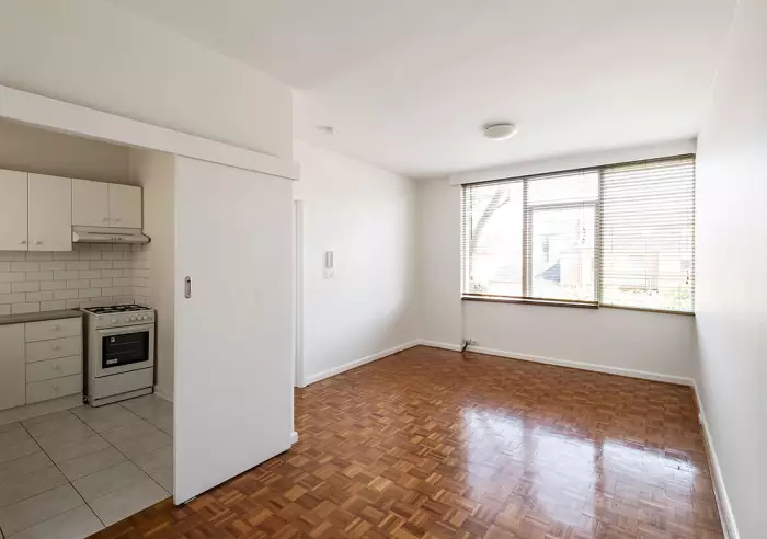 Well presented, 1 bedroom apartment in secure block on first floor. Bright kitchen with gas cooking, lounge with parquetry timber floors and heating, large bedroom with built-in robes, en-suite bathroom with bath and laundry facilities, off-street parking included.