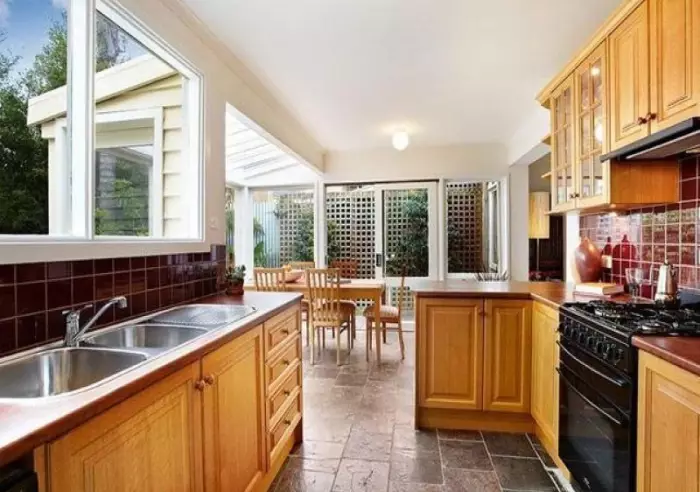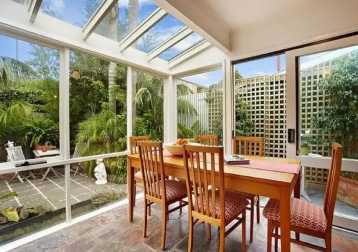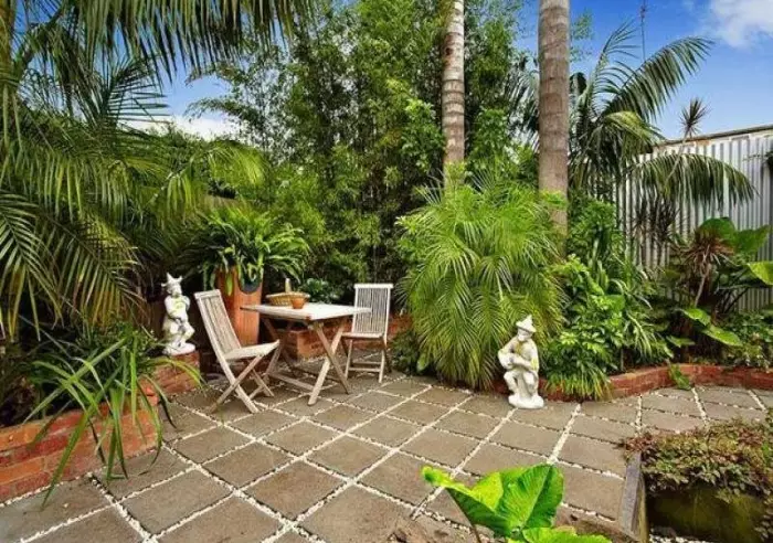 - Open dining/entertaining area overlooking the lush green courtyard garden