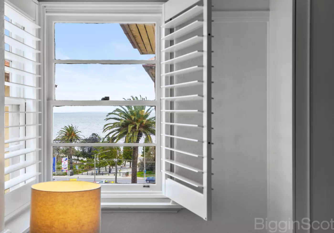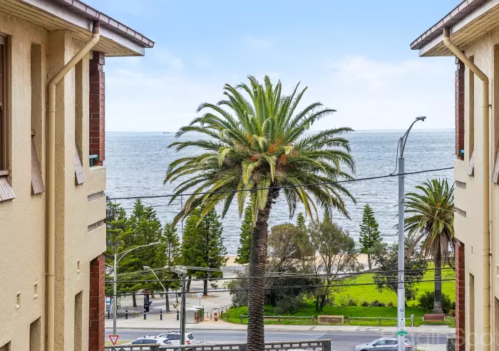 An iconic St Kilda apartment block built c. 1935 in the ever popular Art Deco Style. Proudly sitting on The Esplanade and overlooking the sea it truly represents old style living in a brilliant location with apartment 9 enjoying a top floor position, packed with abundant charm and offering a view of the magical bay. Secure and to the rear, the floor plan is exceptional with the bedrooms to either side of the apartment and away from the living, which is open in design for a clever mix of old and new. The bathroom is sparkling, the polished boards and fireplace a feature, the car parking is safe and secure underbuilding and the lifestyle, cosmopolitan and energetic unbeatable in an iconic location to match.