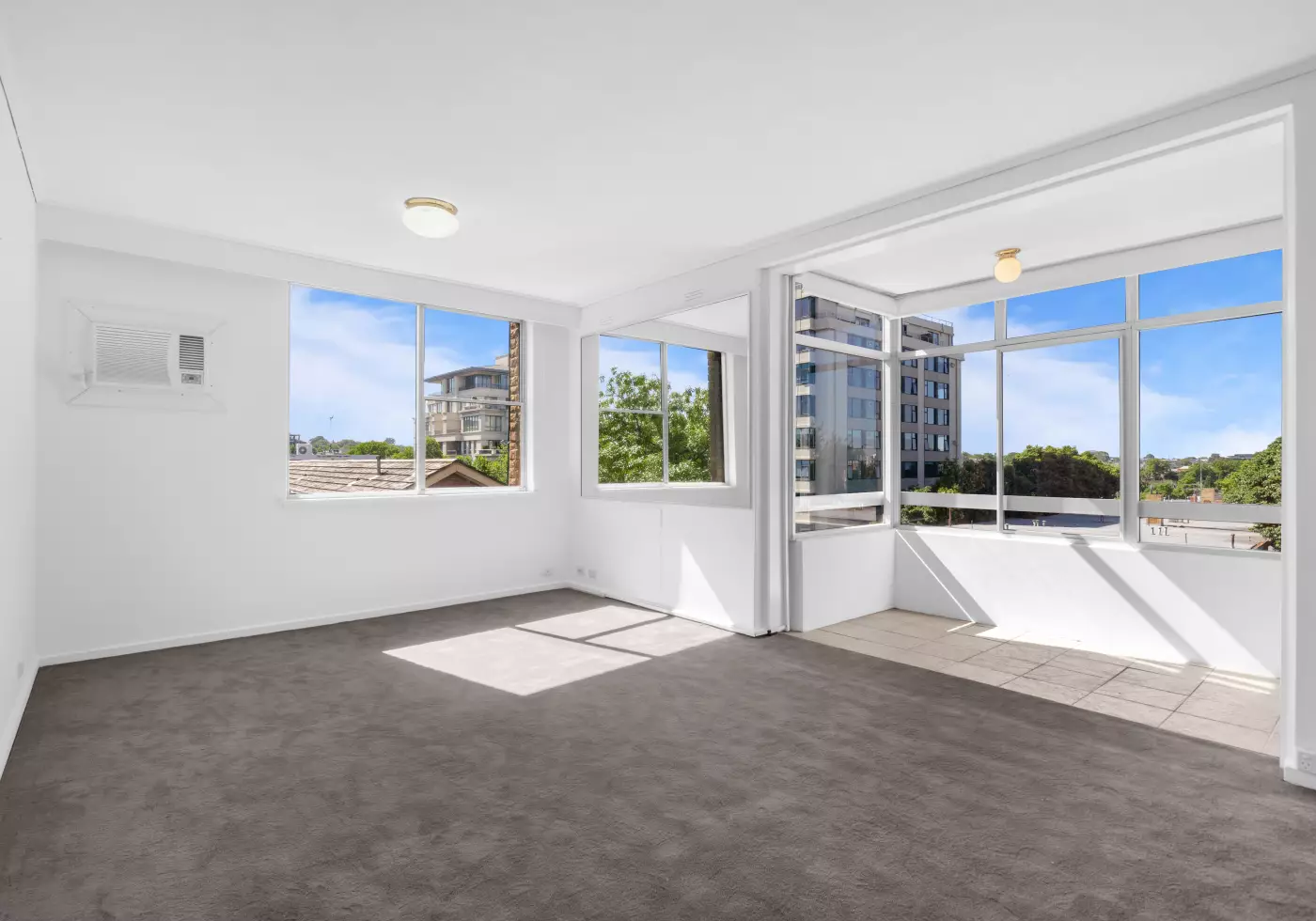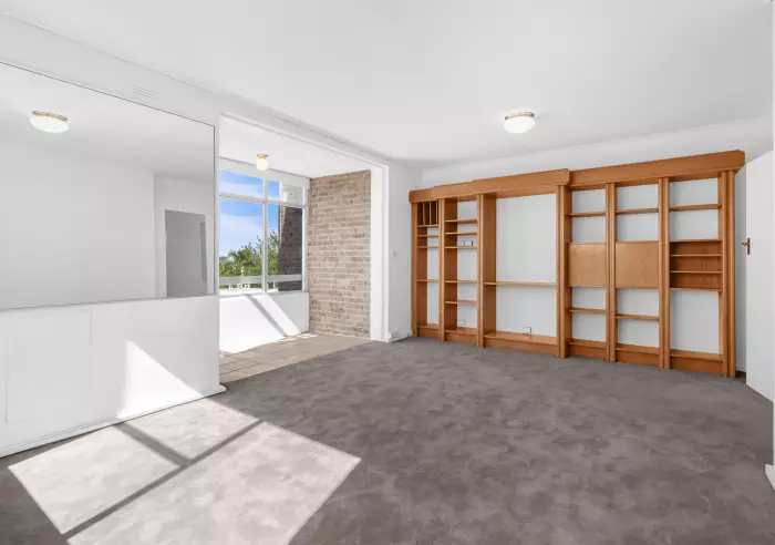 One of South Yarra’s most tightly held buildings, a c1970s classic that retains a significant sense of character and maintains a landmark South Yarra presence, complements this massive one bedroom apartment.
