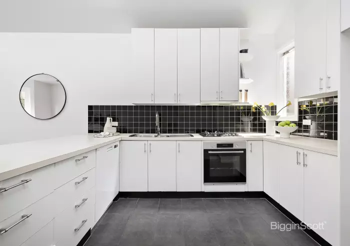 - The home also features a chic central bathroom with shower over the bath, along with a European-style laundry.