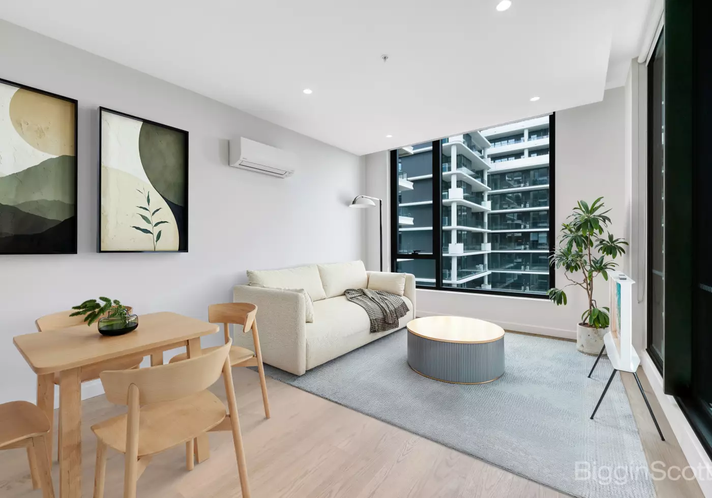 Step into a brand-new apartment where comfort and contemporary style come together seamlessly, positioned just seconds from the iconic Moonee Valley Racecourse. From the moment you enter, you're greeted with stunning city views that flow effortlessly from your open living space to a private balcony overlooking peaceful stone pine trees and the sparkling Melbourne skyline.
