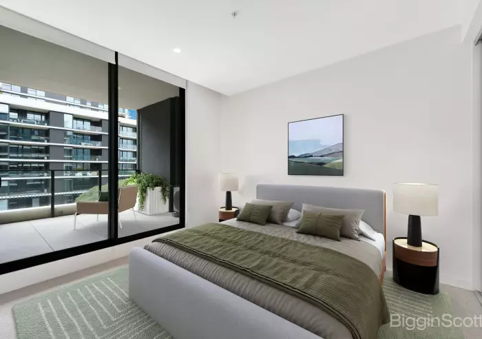 Completing the experience is an exceptional collection of amenities. The rooftop terrace, featuring an infinity pool delivers truly breathtaking 360-degree views of Melbourne, perfect for relaxing or hosting friends. A contemporary gym and rejuvenating sauna ensure your wellness is always within reach.