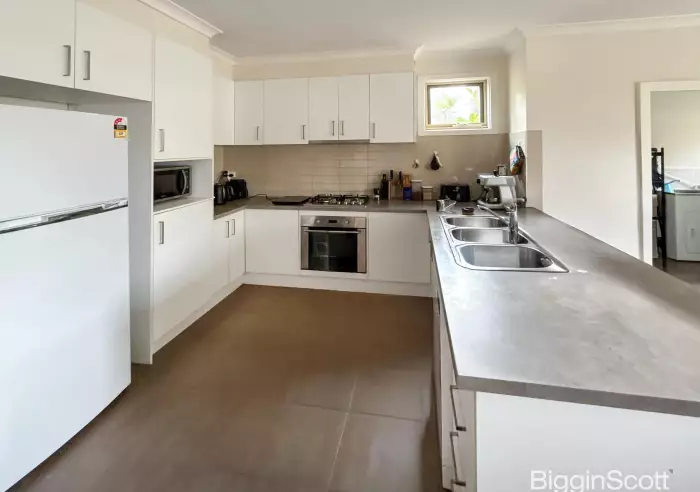 The heart of the home is the light-filled open plan living zone, comprising a spacious lounge and meals area that flows seamlessly from the centrally located kitchen. The stylish kitchen boasts stainless steel appliances, ample bench space and easy-care floating timber flooring, making both everyday living and entertaining a breeze.