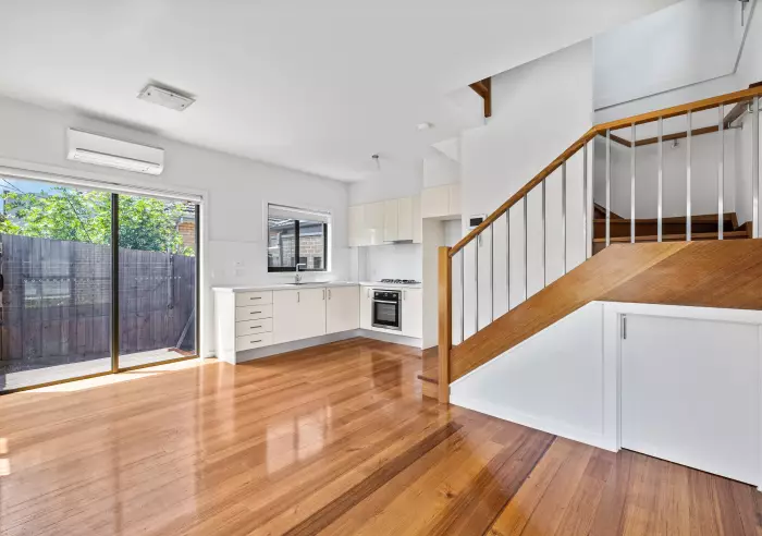 This beautifully presented home offers a lifestyle of comfort, convenience and low maintenance living. The interior features two spacious bedrooms, complemented by a fully tiled bathroom and timber flooring throughout. The open plan living and dining area is bright and inviting, with a split system providing year round comfort, while the modern kitchen with gas cooktop and electric oven ensures practicality and style. Additional features include under-stair storage, an alarm system and a doorbell with integrated camera for peace of mind.