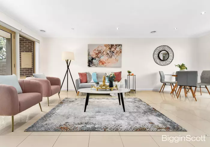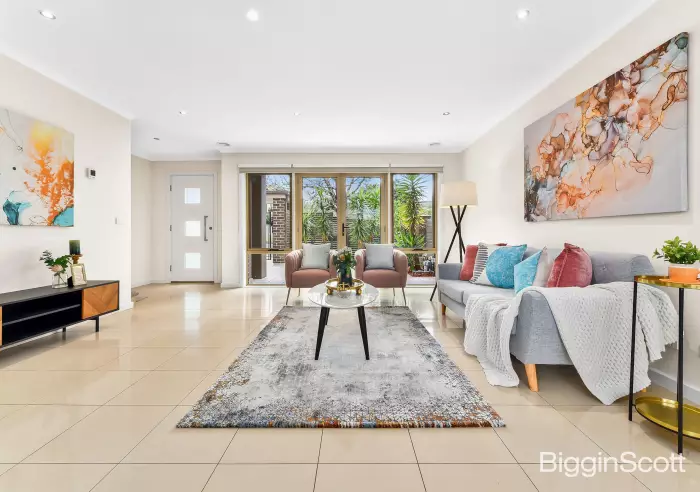 All three bedrooms are generously sized, including a master bedroom with its own ensuite and walk in robe. A second modern bathroom services the remaining rooms. A private front courtyard provides a quiet outdoor retreat, while the front garden has been thoughtfully landscaped for low maintenance living. The secure steel front door enhances privacy and peace of mind, and the property includes single car accommodation.