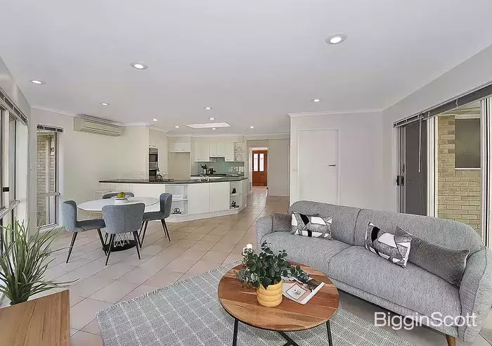 The master bedroom is well proportioned and features a built in robe and private ensuite. The remaining bedrooms are all fitted with built in robes and are serviced by a stylish central bathroom, while a separate study offers flexibility to be used as a fourth bedroom if required. Each bedroom is equipped with its own split system cooling for added comfort.