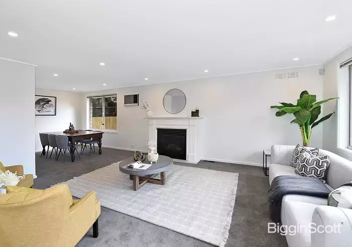 Upon entry, you are welcomed by a generous lounge room highlighted by a cosy gas log fireplace, complemented by a split system for year round climate control. The heart of the home is the well appointed kitchen, showcasing premium Miele appliances including a gas cooktop, electric oven and dishwasher, all designed to enhance everyday living and entertaining.