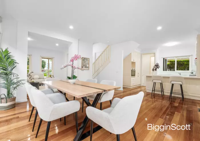 Wonderfully private and oriented for excellent all-day light, the surprisingly large interior leads from a secure, garden courtyard into a dual-level layout made to move with the seasons and growing needs. Three cleverly arranged living areas include a formal lounge and formal dining room, each hosted by the well-appointed central stone kitchen.