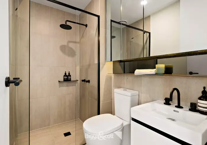 Functional open plan kitchen, living & dining area, fully enclosed winter balcony for use all year round, generous bedroom with built in robes, luxuriously appointed bathroom with matte black fittings & walk in shower, plus 1 off street & secure garage carpark with storage cage.