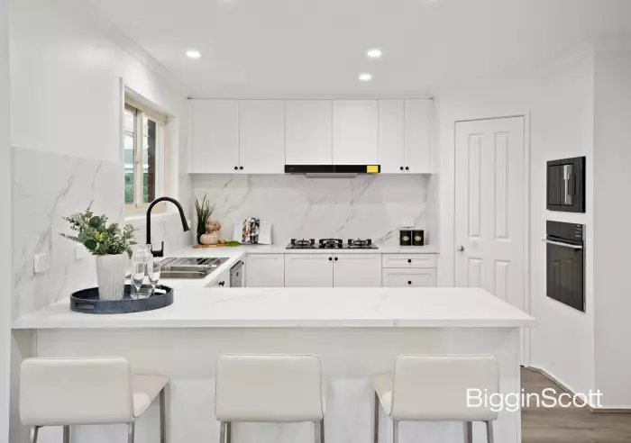 At the heart of it all, a beautifully renovated kitchen becomes the meeting place - gleaming stone benchtops, marble-inspired finishes, and ample storage blend style with everyday practicality. It's where meals are shared, stories are told, and memories are quietly made.