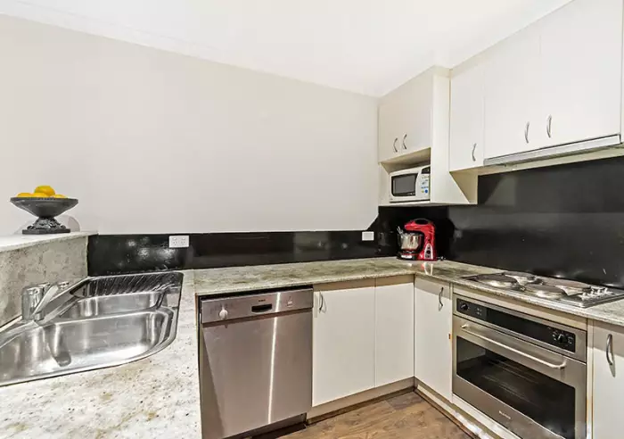 Further features include open plan lounge/dining, kitchen with stainless steel appliances, stone bench tops and dishwasher.