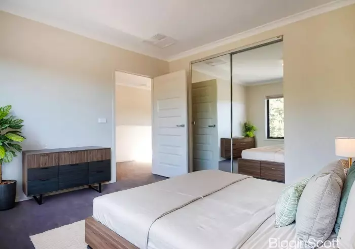 The home opens to a light-filled lounge and dining area that flows seamlessly into a well-appointed kitchen and meals zone, creating a comfortable and functional layout for everyday living. Accommodation is thoughtfully arranged, with a generous master bedroom located on the ground floor and two well-sized bedrooms positioned upstairs, all serviced by two stylish and well-maintained bathrooms. An additional sitting area upstairs provides a flexible second living space, ideal as a retreat, study zone or relaxation area.