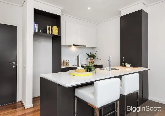 Moments to all the action - the apartment features a generous central lounge and dining zone adjoined by a Caesarstone kitchen with long breakfast bar and stainless steel appliances including a Technika induction cooktop. Also opening out from the living hub is the enormous terrace where you can soak in the morning sun and entertain friends on the weekends.