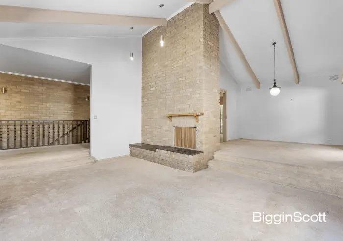 Incredibly spacious and light-filled, the home's superb layout has been well planned, with a wonderful sunken lounge focused towards an ambient double-sided fireplace and complemented by cathedral ceilings, concrete flooring underneath the carpet and an adjacent dining room.