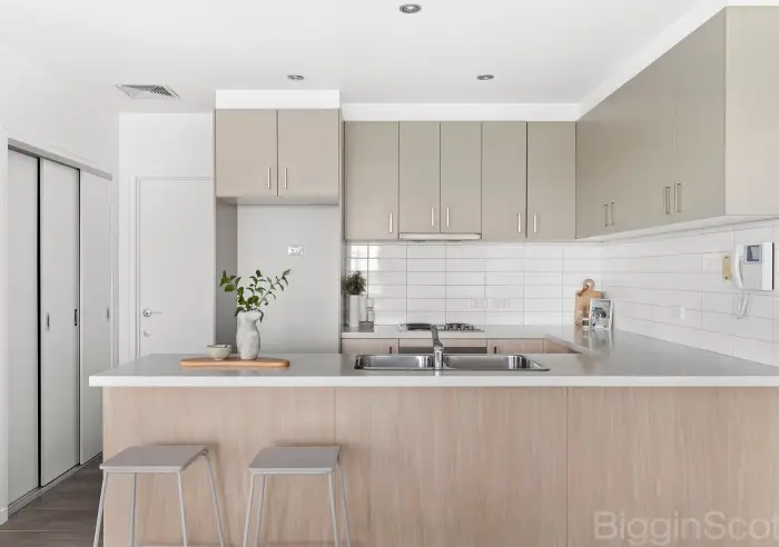 The sleek kitchen delivers on both form and function with abundant bench space and storage, while two spacious bedrooms with built-in robes provide restful retreats. The master enjoys ensuite privileges, complemented by a polished main bathroom and the convenience of a separate laundry.