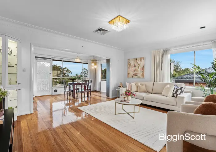 Shimmering with polished hardwood floorboards, the lounge room delivers an immediate sense of comfort that continues through to the dining room where you can step out onto the entertainer's terrace and relish Dandenong Ranges views.
