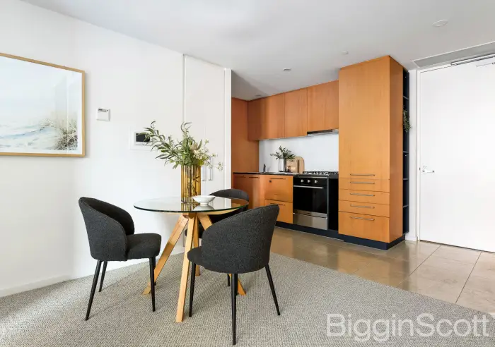 Perfectly positioned moments from the sand and the vibrant heart of Bay Street, this exceptional one bedroom plus study apartment sets a new benchmark for bayside apartment living. Immaculately presented and beautifully upgraded throughout, it stands as one of the finest one bedroom opportunities currently available in Port Melbourne.