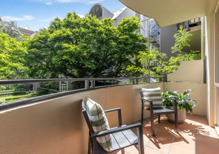 • Private balcony with serene leafy views overlooking the beautifully landscaped internal courtyard