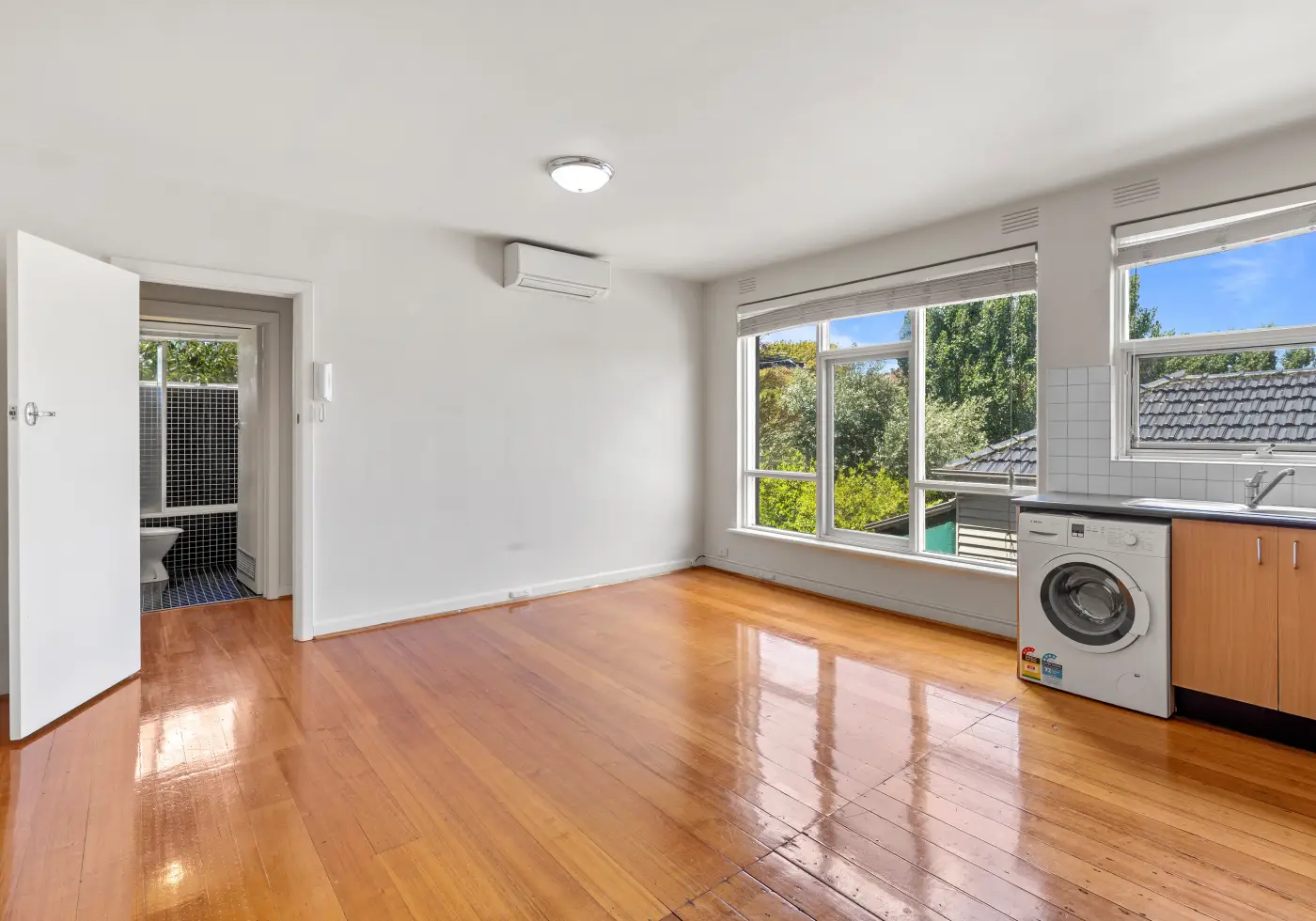 - Open plan living/dining room with split system