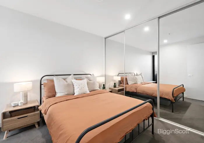 - Two generously sized bedrooms with mirrored built-in robes and soft carpeting, with the main bedroom opening directly to its own private balcony.