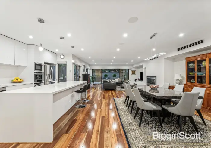 Showcasing exquisite design principles and craftmanship throughout, this gorgeous Master Builders home delivers everything you could ask for and more, with an incredible layout that boasts multiple living rooms, alfresco entertaining and a long list of high-end fixtures and fittings that are ready to take your breath away. Richly detailed with high ceilings and engineered Tasmanian hardwood floorboards, the home flows inside where a delightful living room awaits your presence. Continuing through to the open plan hub, you’ll find an expansive kitchen, meals and family room incorporating a gas log fire, recessed speakers, stone benches/splashbacks, 900mm Bosch appliances (oven, induction cooktop and dishwasher), Blanco microwave and steam oven, Fisher and Paykel coffee machine, plus a waterfall-edged breakfast bench. Sliding doors lead out to the alluring alfresco entertaining zone, while a 100% dark and sound insulated home theatre rests downstairs and offers the perfect space to relax and unwind with family and friends. The lavish master bedroom rests on the entry level and boasts a gas log fire, new carpet, split system air conditioning, mirrored built-in-robe, walk-in-robe and a luxurious twin vanity ensuite with dual rainfall shower, bath, toilet and floor-to-ceiling tiles, further supplemented by a powder room and laundry (with exhaust fan). Accommodation continues upstairs with a further three robed bedrooms, including a second master suite with walk-through-robe to ensuite, accompanied by a twin vanity spa bathroom and a family retreat. Superbly enhanced by ducted heating, refrigerated air conditioning, commercial grade security system, intercom, ducted vacuum, electric remote dual blinds in living and master, underfloor heating to three bathrooms and laundry, heaps of storage, water tank plus a deep double garage with internal access. Set in an exclusive pocket that enjoys enviable proximity to Mullauna Secondary, Mitcham Primary, Mitcham and Nunawading Shopping Villages, Walker Park, Halliday Park, both Nunawading and Mitcham Train Stations, Nunawading Library, Eastland Shopping Centre plus the Eastern Freeway.