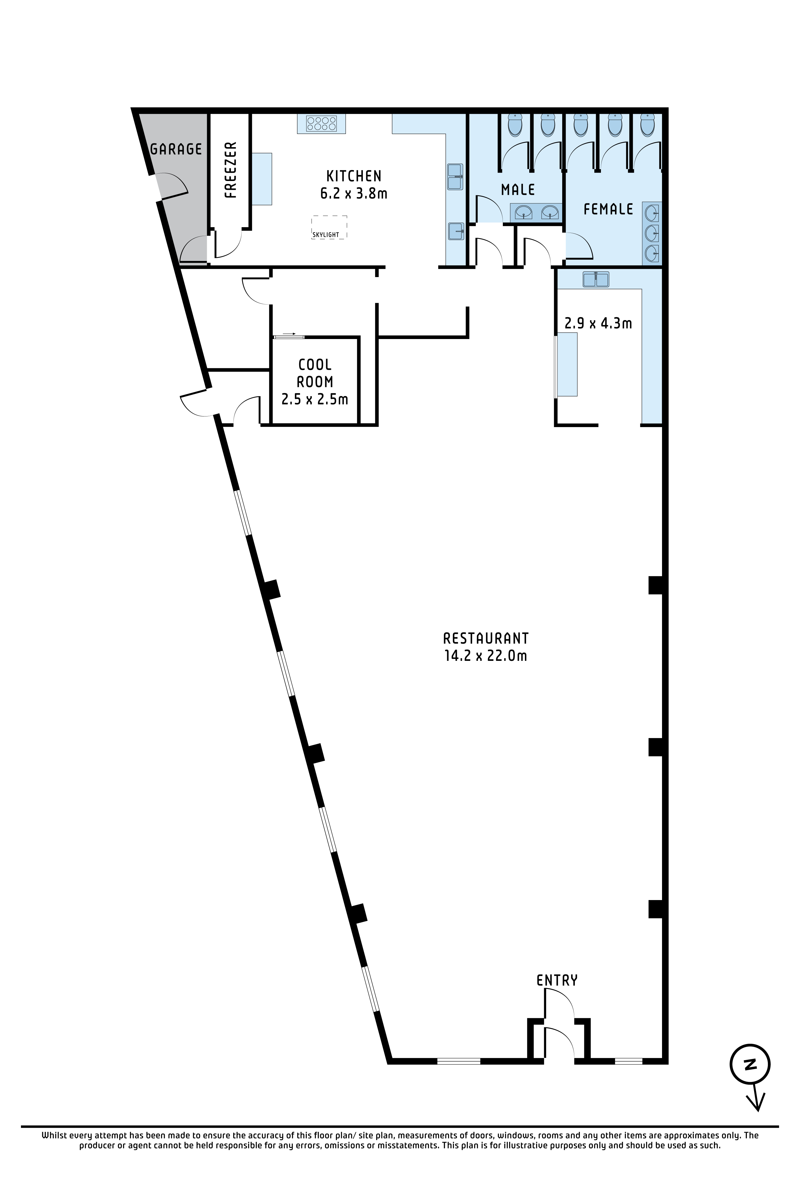 Adding further value is the extensive existing fit-out, including a full commercial kitchen, cool room/industrial fridge, full bathroom amenities, a full-sized bar setup, downlights throughout and an integrated speaker system. These features significantly reduce setup costs and open the door to immediate occupation for hospitality or event-based operators, while still offering flexibility for alternative uses.