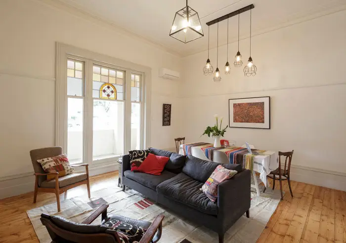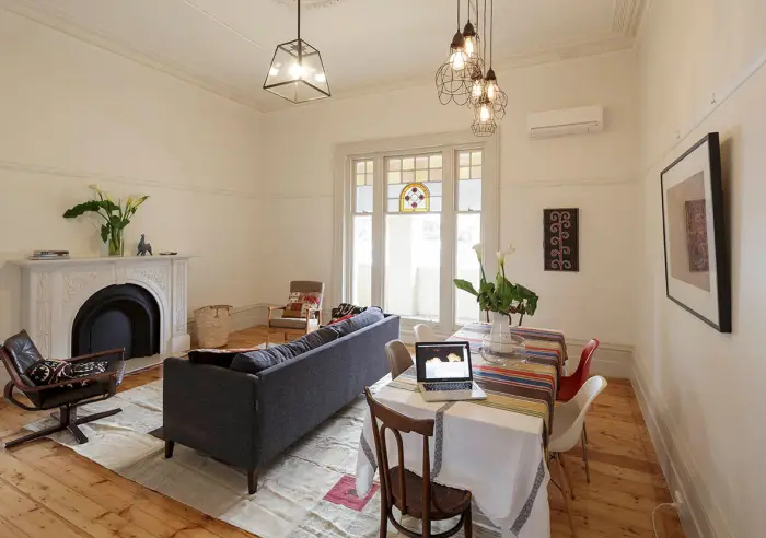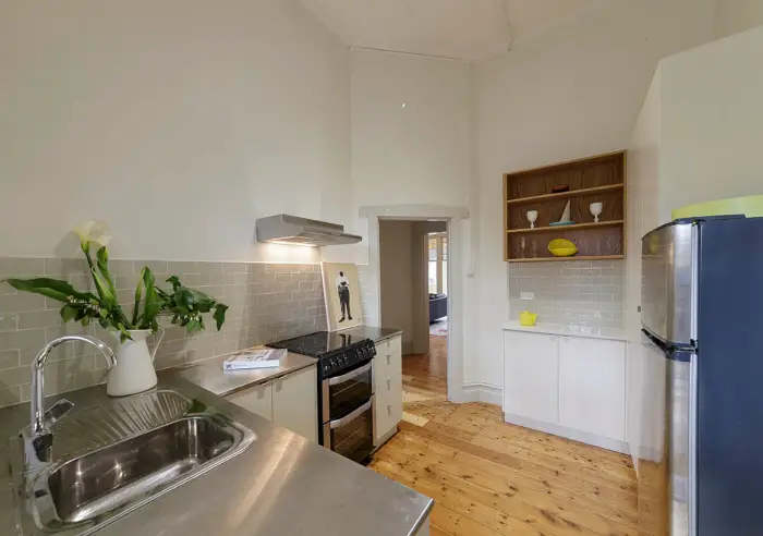 This fabulous mansion style ground floor apartment (Circa 1886) has been transformed and brought into the 21st Century. Beautifully updated only a few years back, adding today's mod cons yet still retaining the old world charm. Featuring over-sized spaces including a large living area with ornamental fireplace and split system heating/cooling, separate modern kitchen with gas cooking and dishwasher, two bedrooms with built in robes, modern bathroom with laundry facilities, one off street park, modern lighting, extra high ceilings & beautiful lead light windows.