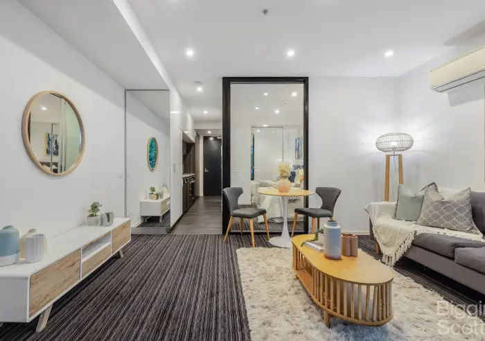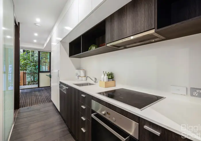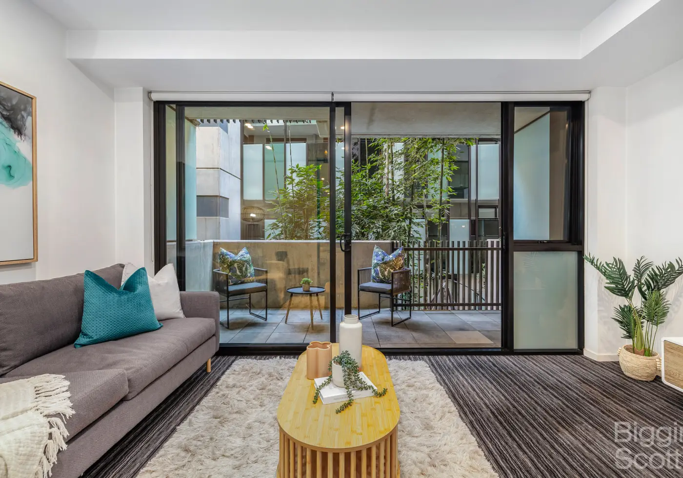 Comprising a modern kitchen with appliances, light filled living room and well sized bedroom. Sparkling bathroom and European laundry, with balcony.