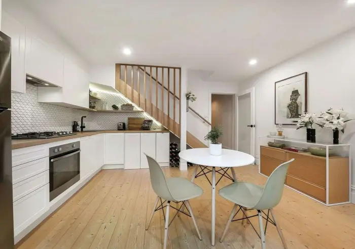 Once you walk through the front door you are greeted with period features throughout. The living and dining area feature polished floorboards which then open through to French doors show casing the north-facing sun drenched courtyard, ideal for entertaining and with right of way access. The kitchen is renovated and distinguished by designer surfaces, stainless steel appliances and dish-washer. A sparkling bathroom and convenient laundry facilities add further appeal. Featuring: a beautiful sunny front veranda, arched hallway, light filled front sitting room with open fire place which could also work as a second bedroom, and bright double bedroom with built-in robes.