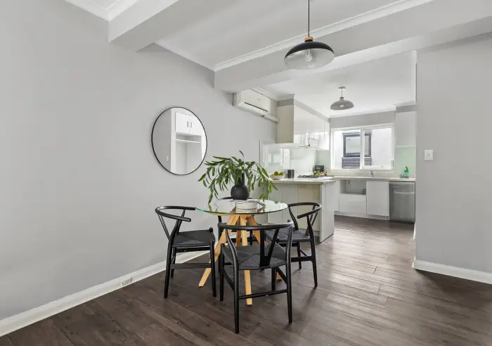 - Flooded with light thanks to north-facing windows, the home is welcomed by a distinct entrance hall giving way to the sunny living/dining zone.