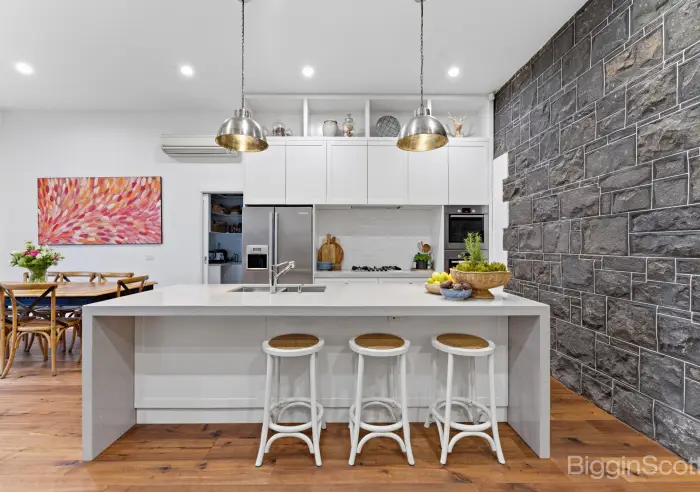 At the heart of the home, a stunning designer kitchen makes a bold statement. Featuring quality appliances, expansive stone benchtops, and an impressive butler's pantry, it's perfectly appointed for both everyday living and grand-scale entertaining.