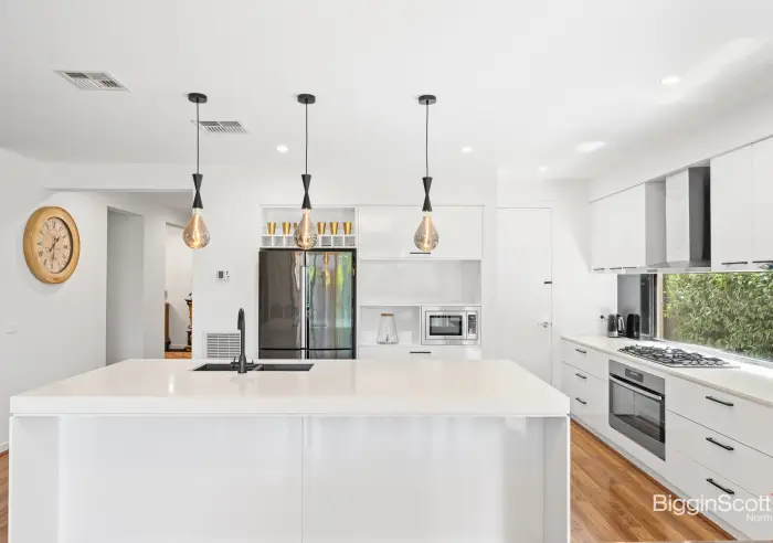 • Kitchen with butler's pantry, large 90mm stone benchtop, and hi-tech appliances