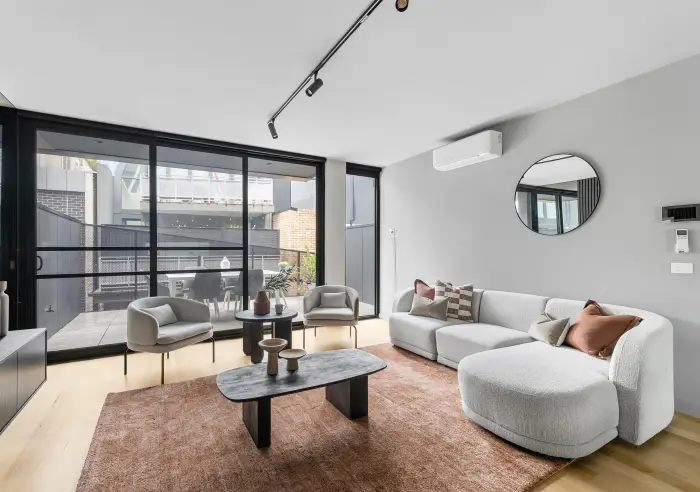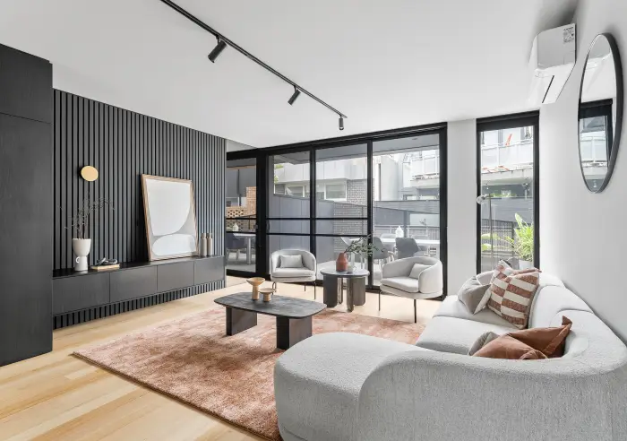 Presenting a modern, three-level townhouse for those seeking a stylish, low-maintenance lifestyle. With spacious living areas, modern finishes, this home is designed for comfort and convenience. The ground floor features a carpeted bedroom with built-in robe and access to a private outdoor area, perfect for guests, a home office, or a private retreat. A sleek, modern bathroom with walk-in shower and a European laundry under the stairs further enhance the functionality of this level. Internal access from the oversized single car garage ensures practicality and ease of access. On the first floor, the open-plan living and dining area forms the heart of the home, with timber flooring and a stunning pendant light that spans across the room, creating a bright, inviting atmosphere. The adjoining kitchen is generously sized, featuring L-shaped stone benchtops, black cabinetry, and a frosted and mirror splashback. Premium stainless steel appliances, including a five-burner gas cooktop, electric oven, and hidden dishwasher, offering both style and function. Sliding doors lead to a spacious outdoor balcony, ideal for alfresco dining or relaxing. Upstairs, two additional carpeted bedrooms are fitted with mirrored built-in robes and share a modern, sleek bathroom with a walk-in shower and stone vanity, offering the perfect retreat for family living. Additional features include split-system heating and cooling units throughout, LED downlights, and a low-maintenance yard and clothesline for added convenience while its layout offers excellent indoor-outdoor flow, making it perfect for family gatherings and easy everyday living.