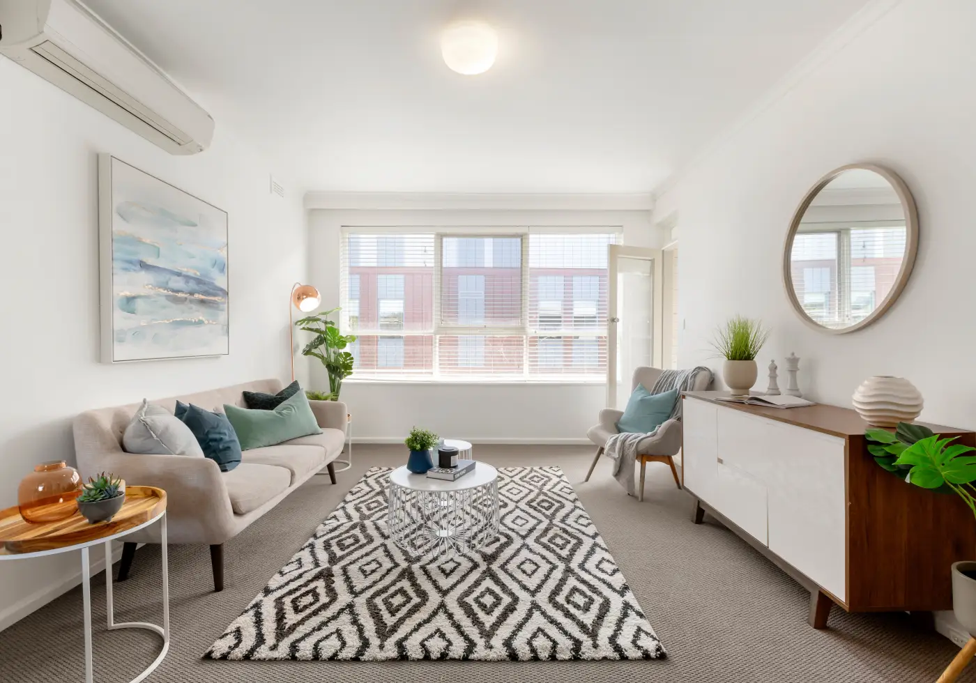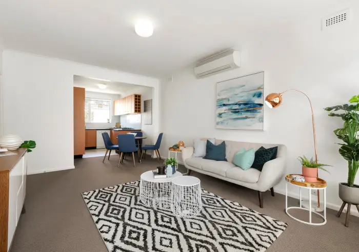 - Huge sunny living area opening to lovely North facing balcony