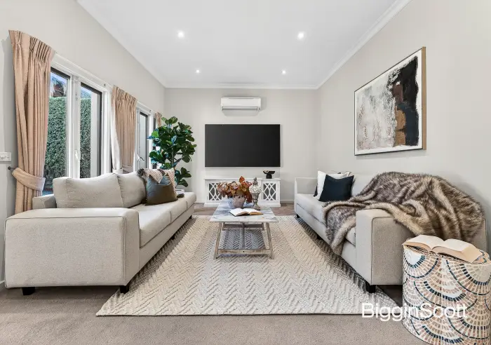 The appealing residence also showcases a well-sized laundry with excellent storage, brand new Braemar 'Magic Touch' gas ducted heating, reverse cycle system, Bosch secure alarm, security cameras (including an active deterrence camera at the front), elegant curtains and blinds, ducted vacuum, gas hot water system, LED lighting, front and rear security doors, private rear courtyard garden, and a sizeable double remote garage with storage area. The property also sits on 378 sqm (approx.).