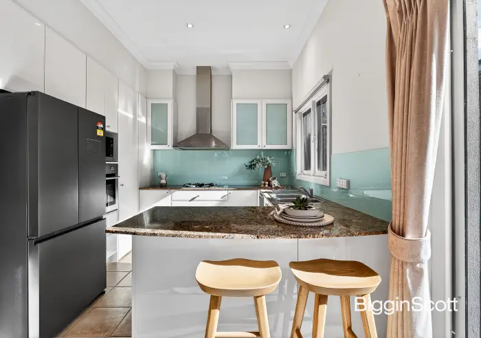 The kitchen is awash in sleek granite and delivers quality stainless steel Blanco and Fisher & Paykel appliances including double dishdrawers. The master bedroom benefits from walk-in robe storage and a magnificent ensuite with a spa bath, double-sized shower, and private toilet. The two other bedrooms both deliver mirrored built-in robes, meanwhile the bathroom is modern and comes with a separate toilet.