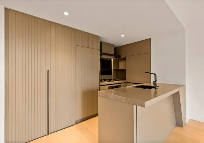 A trendy stone breakfast bar with a sumptuous design, matched by a mirrored splashback and stainless steel appliances, makes the kitchen the ultimate cooking hub. The bedroom is expansive in size and delivers built-in robe storage, meanwhile the bathroom is sublime with a rain shower and first class detail. Further embrace a concealed laundry, split system heating and cooling, secure intercom and secure car space.