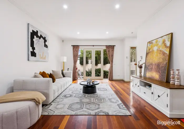 Boasting the privacy of a downstairs double auto garage, walk straight into the vast dining/family room featuring a sun-soaked north courtyard and a serene south balcony, accompanied by a kitchen fitted with stone surfaces and premium appliances. With three bedrooms, two bathrooms and a powder room including a master bedroom with ensuite and tree-top balcony, revel in the lifestyle simplicity merely seconds to exciting eateries, endless retail and city-bound transport.