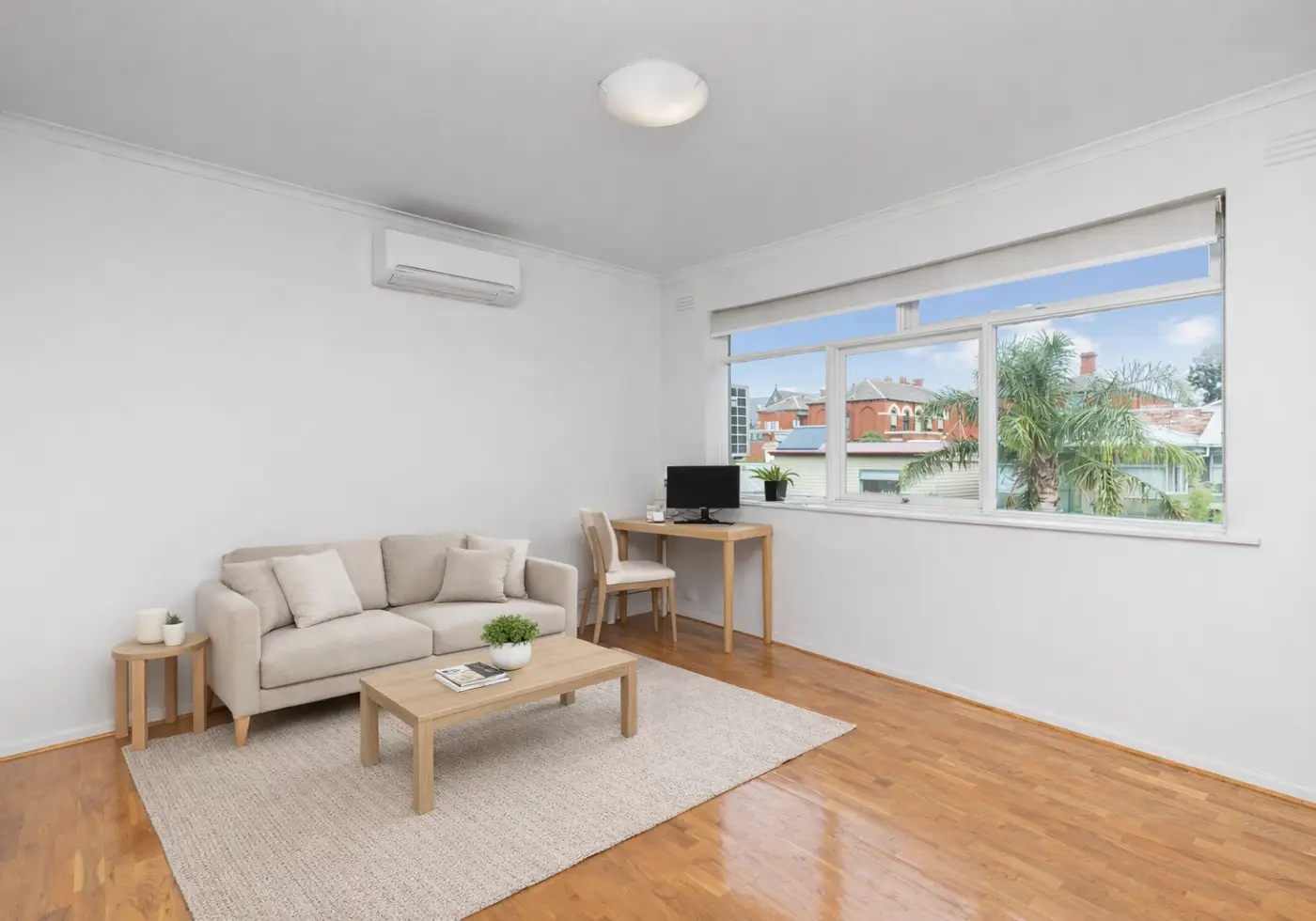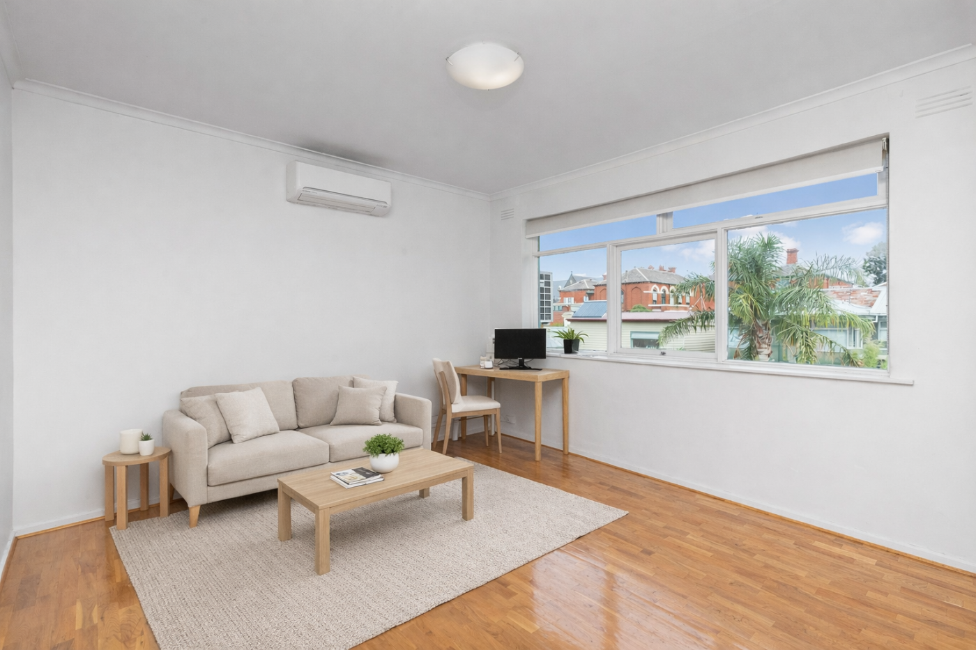 - Living area is light and spacious with parquetry floors