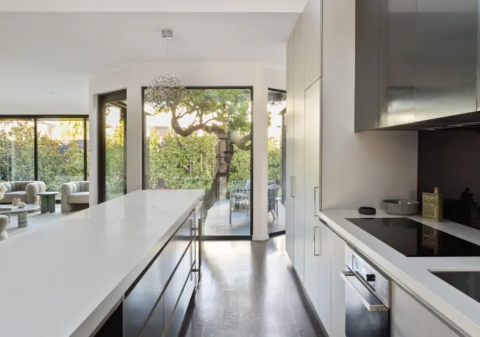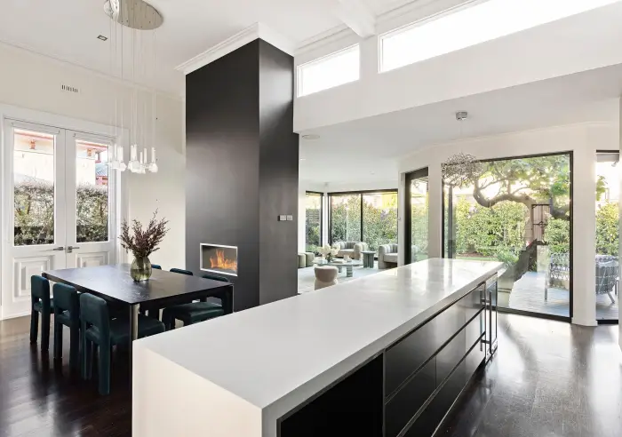 Classic period charm is immediately evident, with bay windows, soaring arched hallways, polished hardwood floors, marble fireplaces, ceiling roses, and ornate cornices creating a home rich in character. Seamlessly integrated throughout is a stunning contemporary design, where expansive glass invites natural light and connects the indoors to a tranquil private garden.