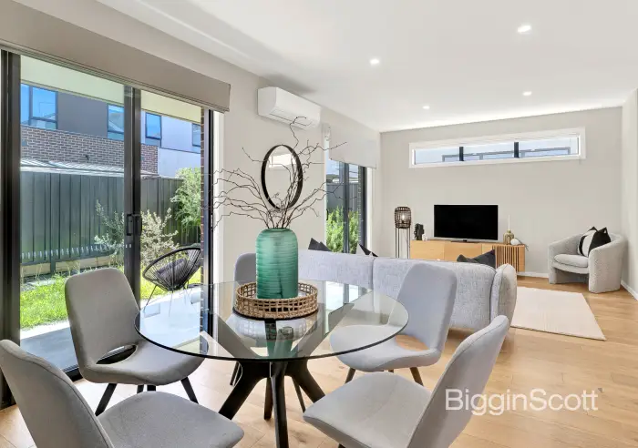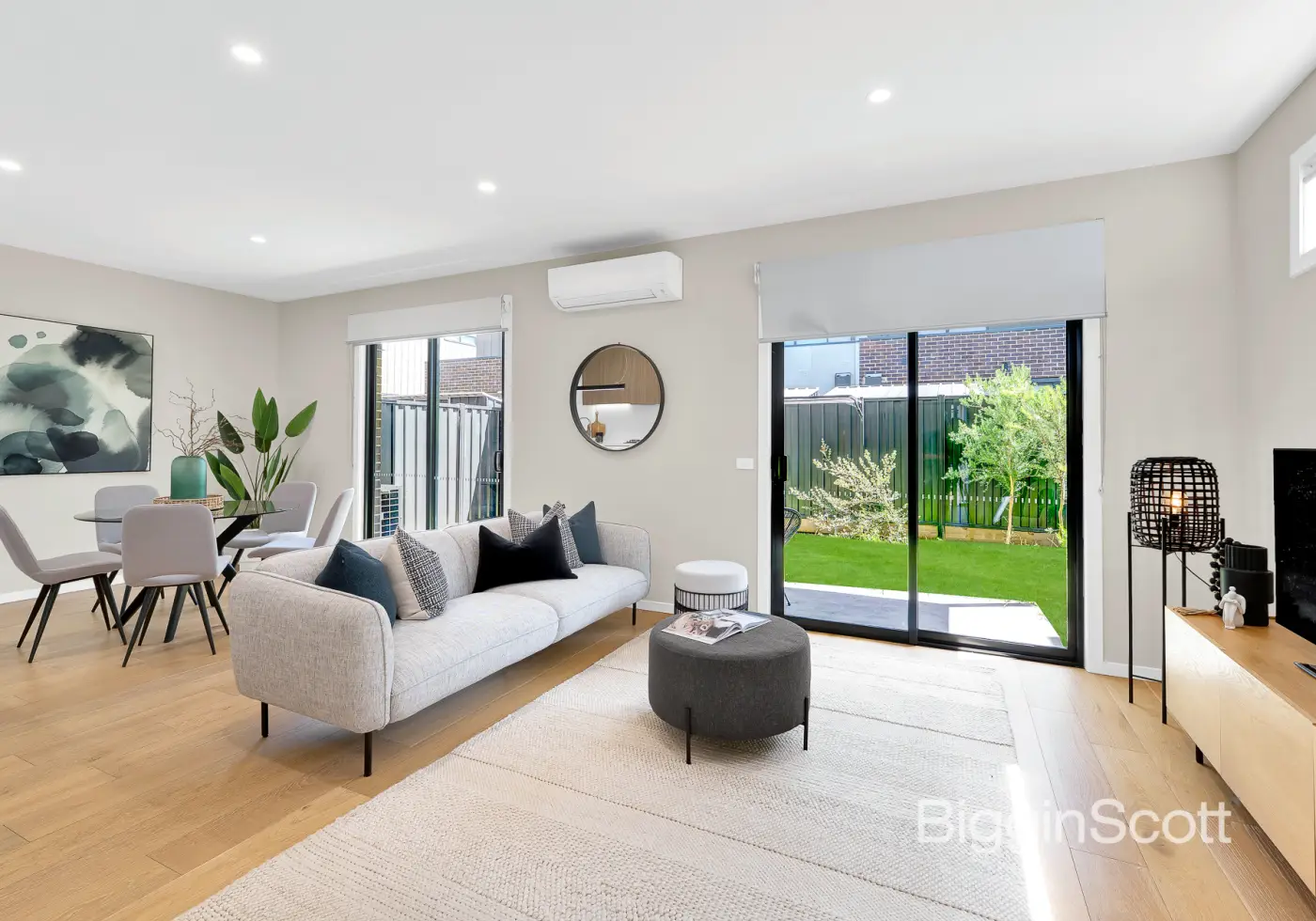 Large glass doors open to an inviting alfresco area and garden, ideal for weekend barbecues, playtime, or entertaining family and friends. You’ll also find a fitted laundry, powder room, and direct access to the garage for extra convenience.
