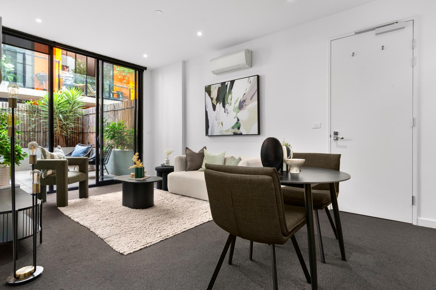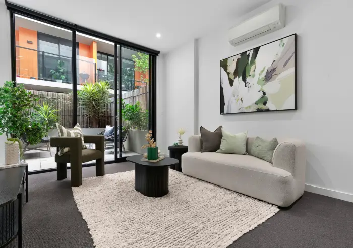 Located in a quiet one-way street within a boutique block of apartments, this property is filled with a sense of contemporary warmth that serves as a brilliant balance to it’s vibrant Prahran location, offering easy city access and unbeatable lifestyle appeal.