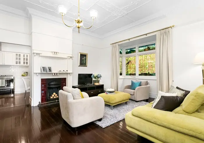 - Character filled living room with ornamental fireplace, temperature controlled with split system heating and cooling