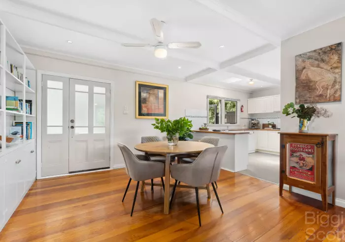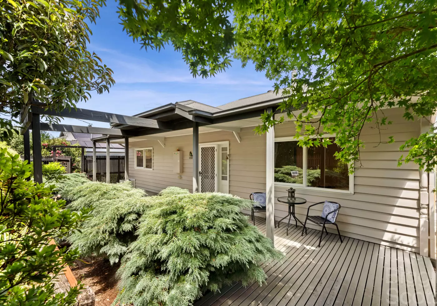 Nestled in a quiet, tightly held cul-de-sac, 4 Barkas Street offers a rare opportunity to own a beautifully maintained home in one of Daylesford’s most sought-after locations. Set on a generous 956m2 block, the property boasts spectacular views over the town and Wombat State Forest, with a secluded front garden providing complete privacy. The house features three well-appointed bedrooms, all with built-in robes; two offer stunning rear views, while the third overlooks the tranquil, Japanese-inspired front garden complete with a fishpond. The home’s two renovated bathrooms include heated towel rails, with the main bathroom incorporating laundry facilities and the second serving as an en suite.